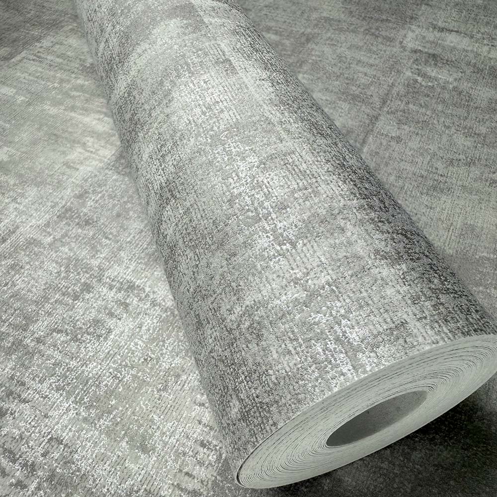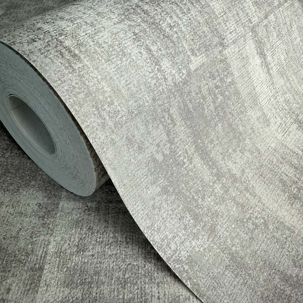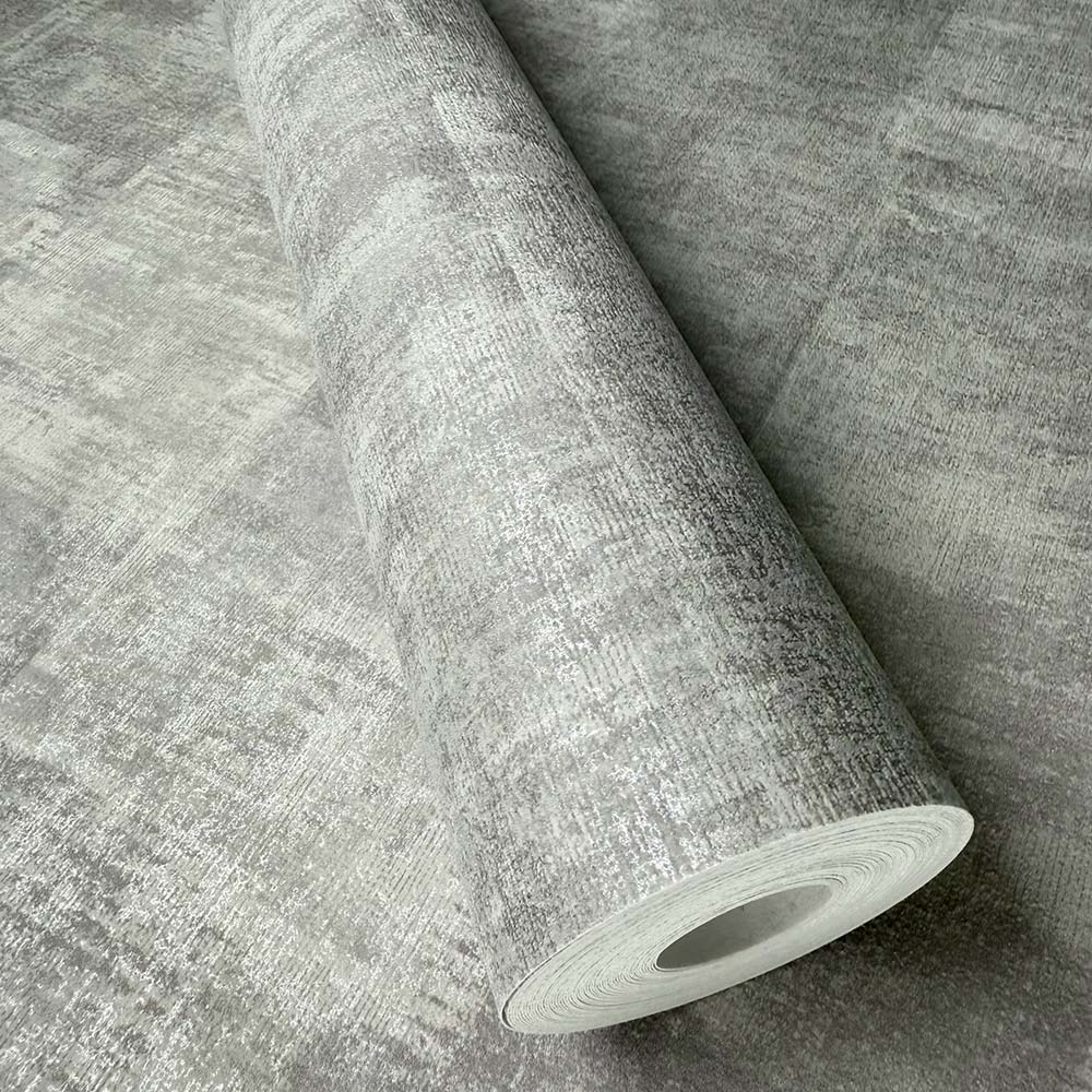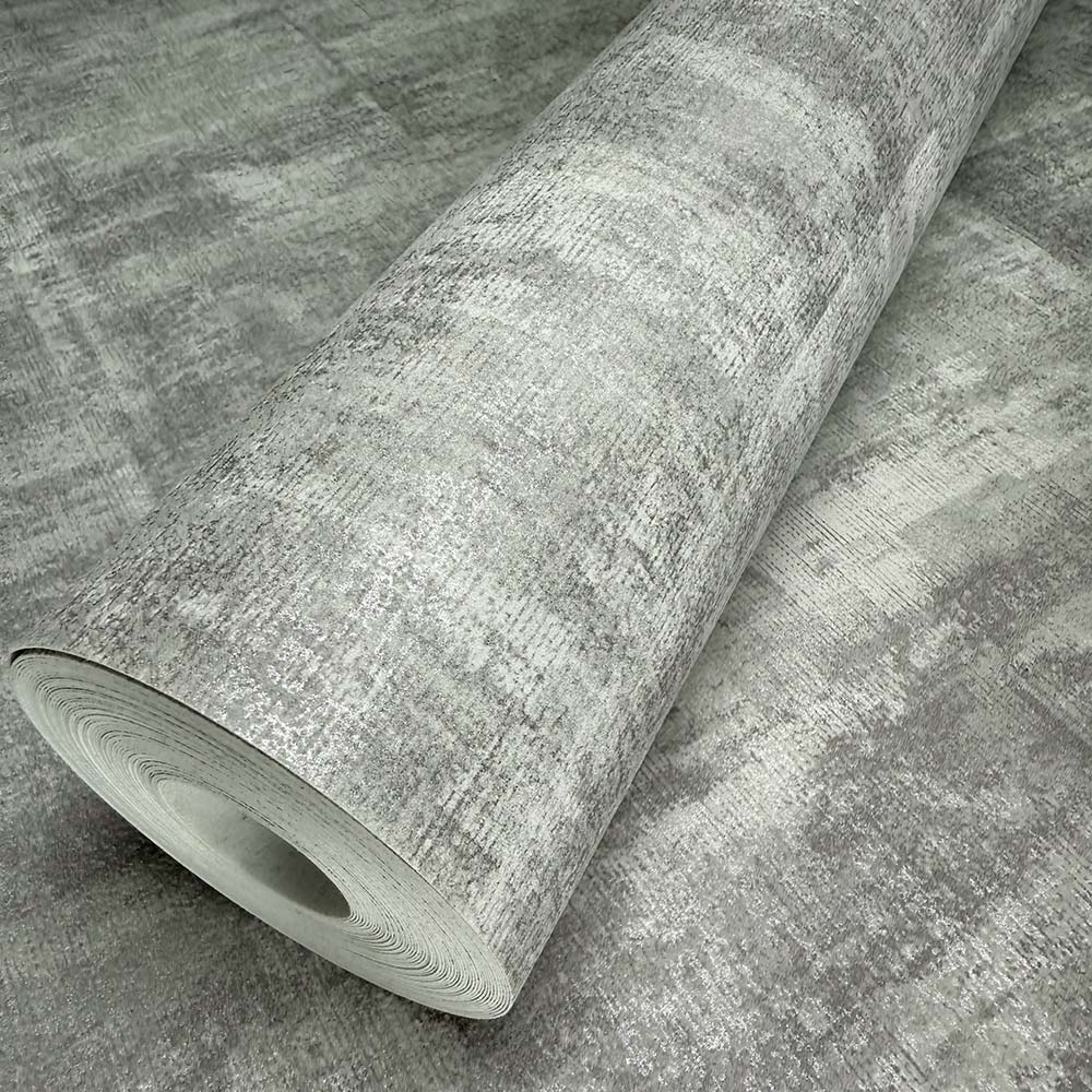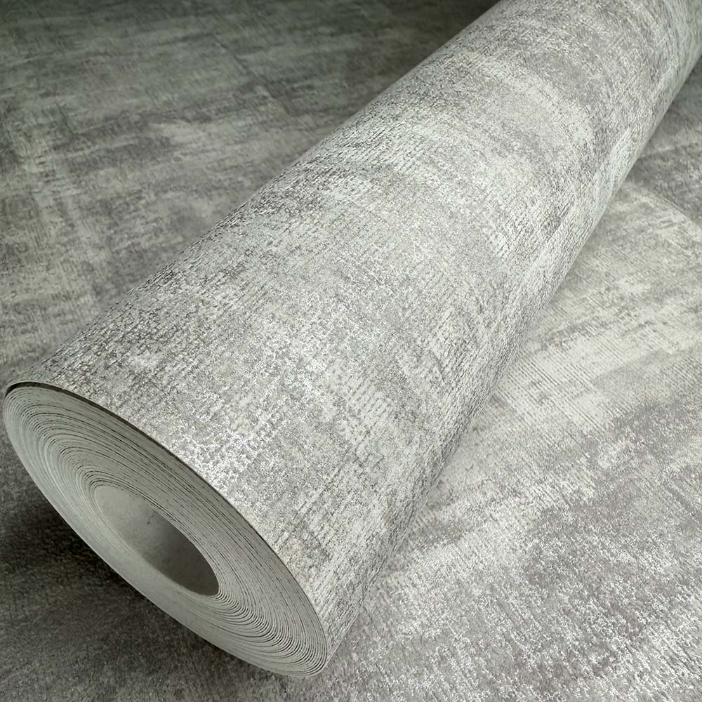 Transform your living space with the Alcazar Platinum, this stunning wallpaper brings a dynamic blend of modern geometric patterns and a worn, textured finish, adding depth and character to any room.