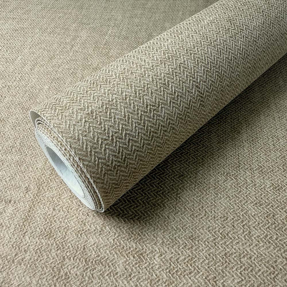 Ayora is a small-scale, semi-plain herringbone wallpaper in rich, warm tones of hickory and soft brown, exuding quiet luxury. Its refined, geometric pattern adds subtle texture and depth, perfectly complementing the rich, autumnal hues of Patacona Autumn.