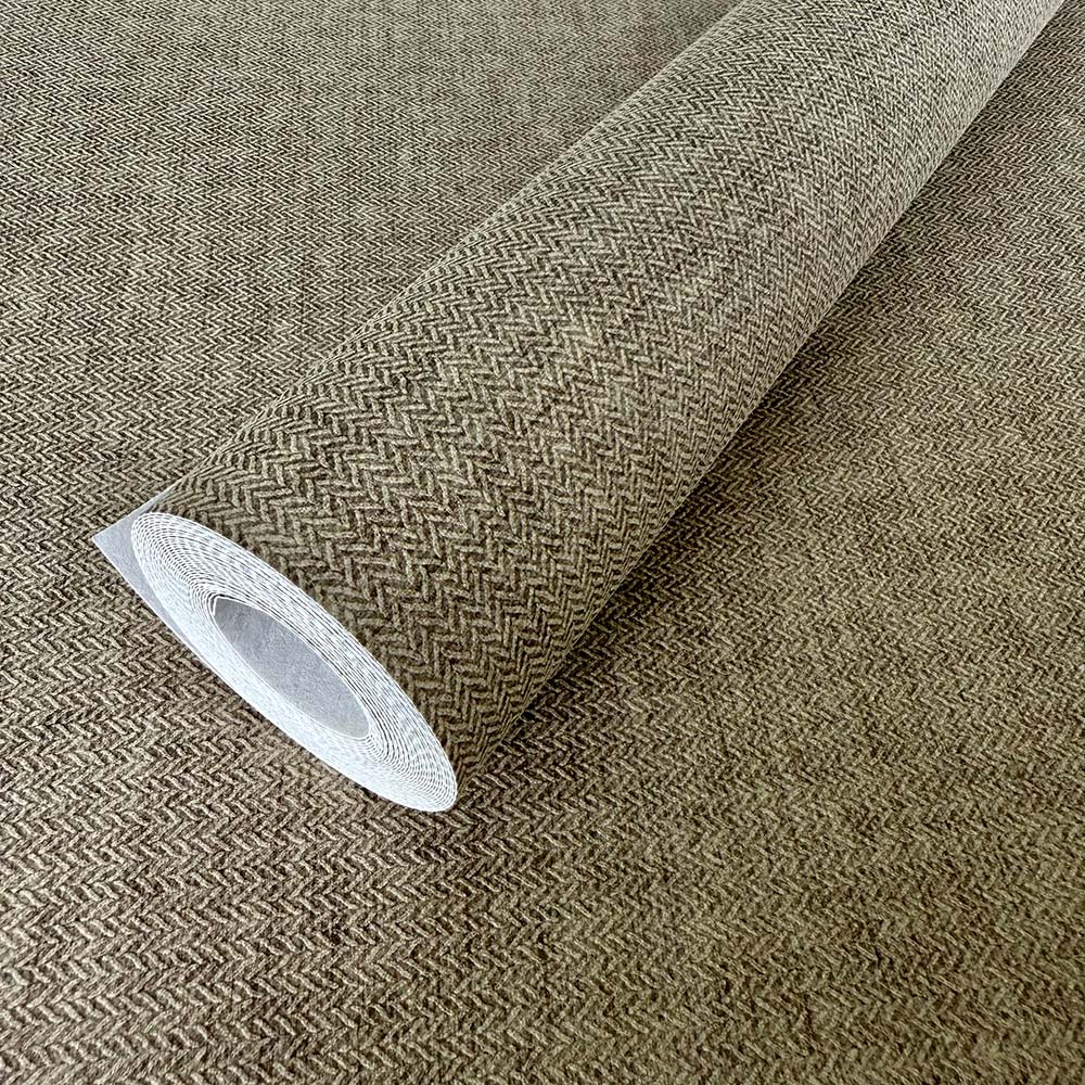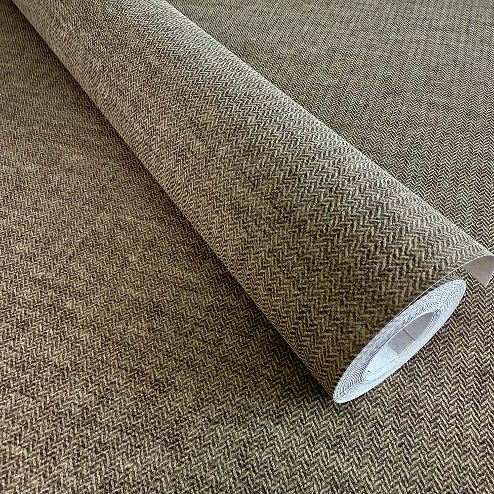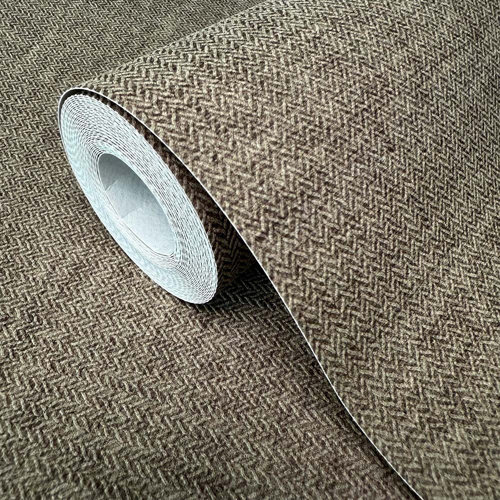 A small-scale herringbone wallpaper in rich, earthy tones that beautifully complement the deep hues of Vallesa Midnight.