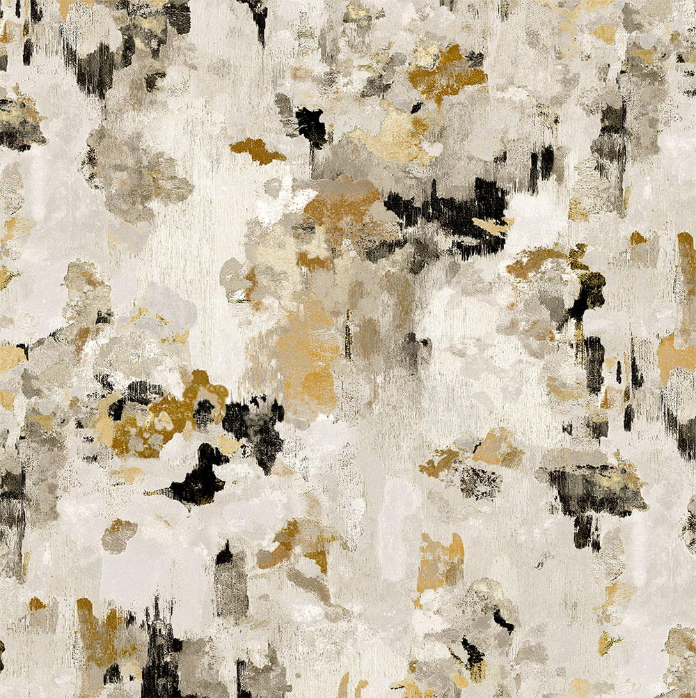 An elegant abstract floral composition rendered in layers of black and warm greys, softened by a neutral ground. Subtle hints of gold catch the light, adding warmth and a quiet sense of luxury to the design.